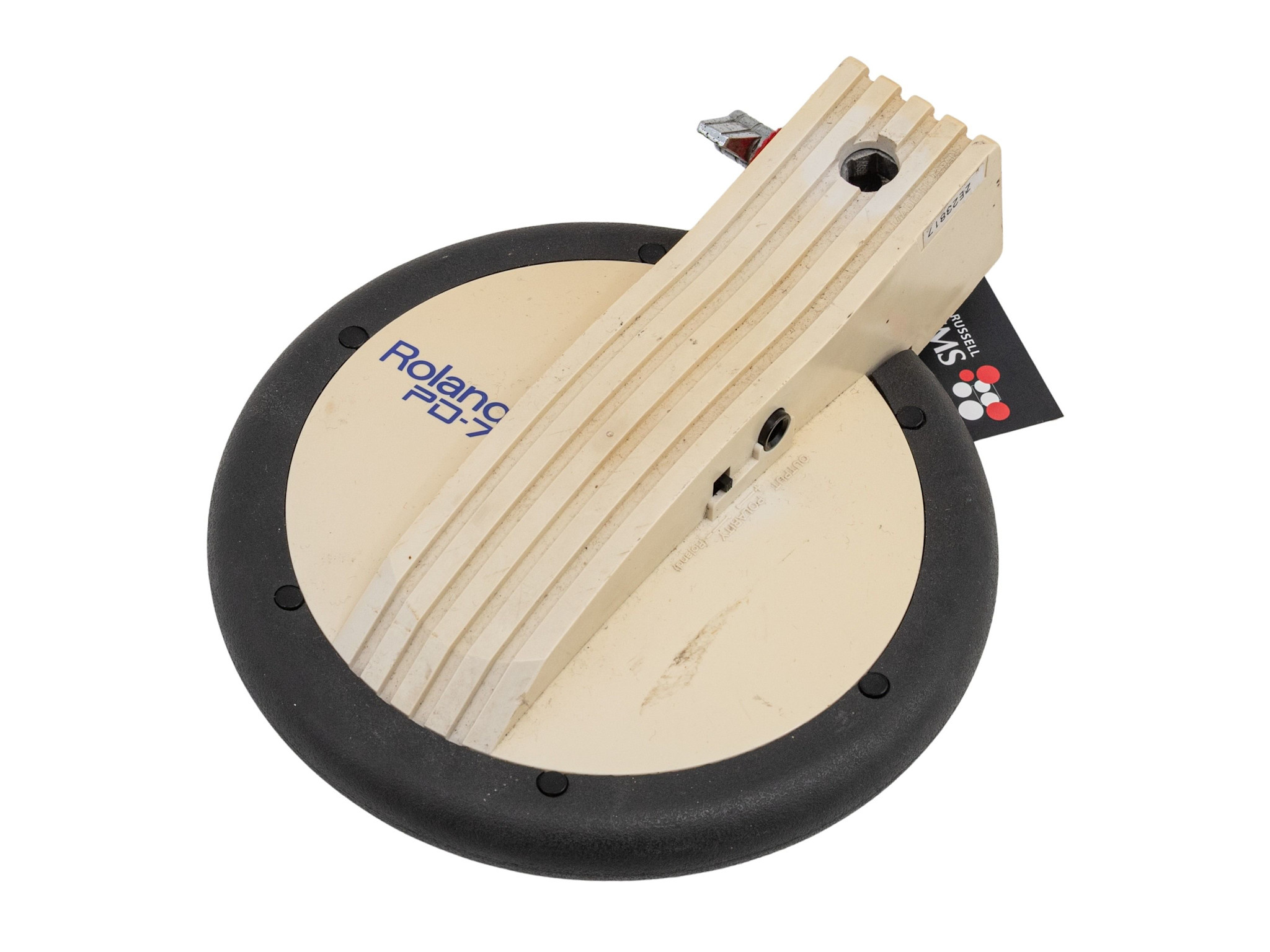 Used condition Roland PD-7 Electronic Trigger Pad showing its age with some notable yellowing of plastic as well as other signs of use with cosmetic marks and scratches present but tested and in full working order.