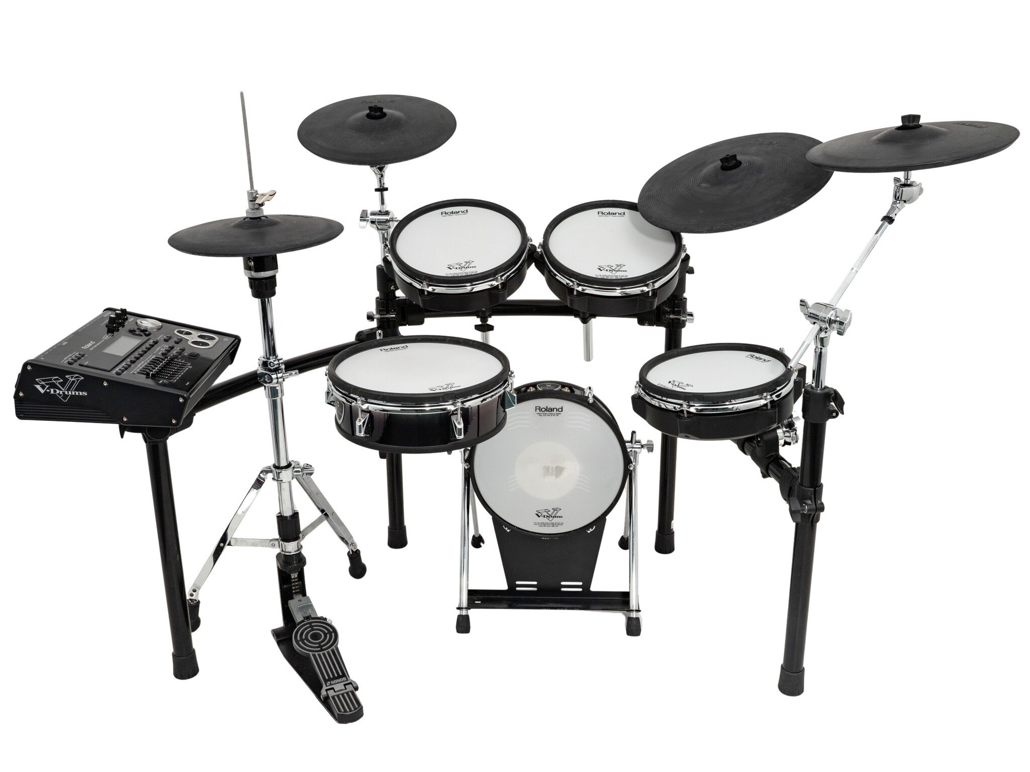 Overall Condition: Showing some light signs of use with some stick marks on the cymbal pads and some wear and tear on the bass drum head but all of this is purely superficial and does not affect use. Otherwise this kit is in very good condition and of course, in full working order. Includes power supply and all relevant cables required for use, but DOES NOT include hi hat stand, stool, bass drum pedal, stocks or headphones however all of these items are available from our website or contacting us directly.