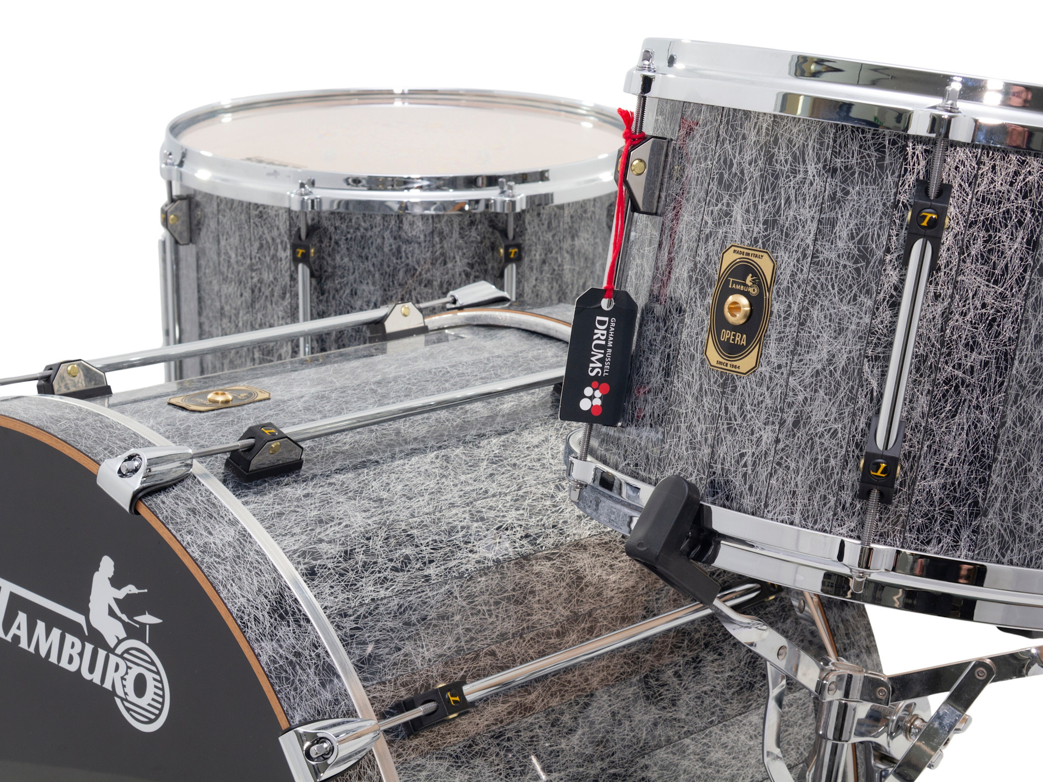 This used Tamburo Opera 22" Stave Birch Drum Kit, Fantasy Black is now available with us at Graham Russell Drums.