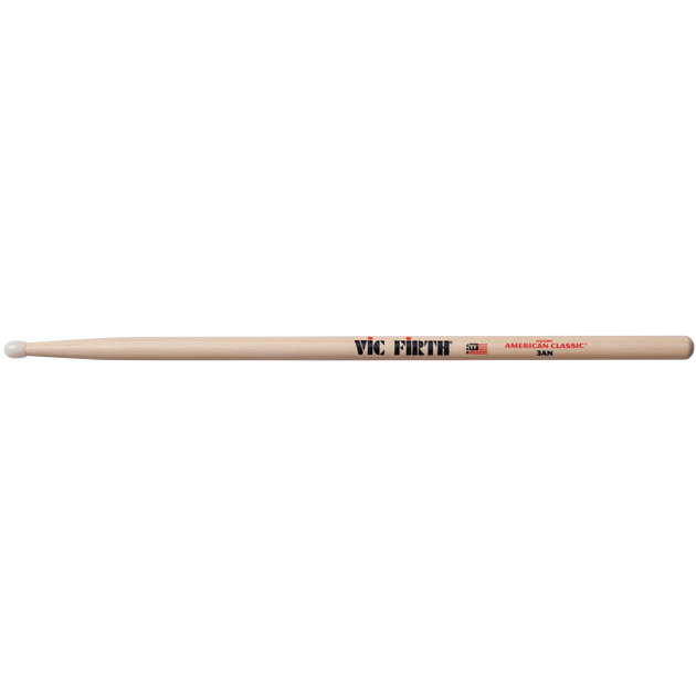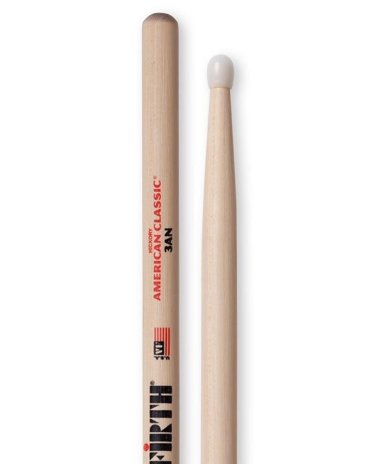 Vic Firth American Classic 3AN Drum Sticks provide a nylon tip, bringing increased durability and added brightness to the bold-sounding 3A.