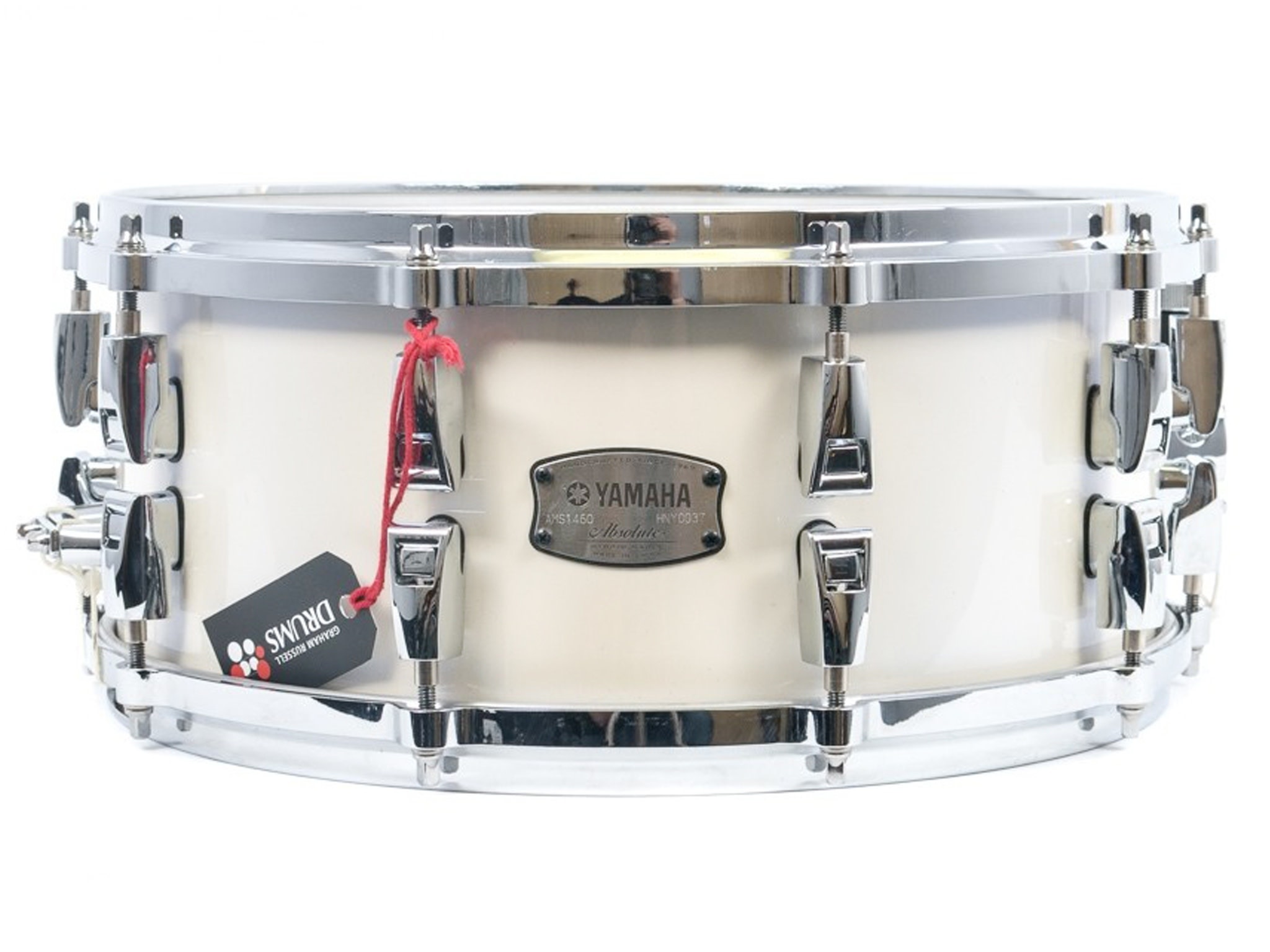 This Yamaha Absolute Maple Hybrid 14” x 6” Snare Drum, Polar White is now available with us at Graham Russell Drums.