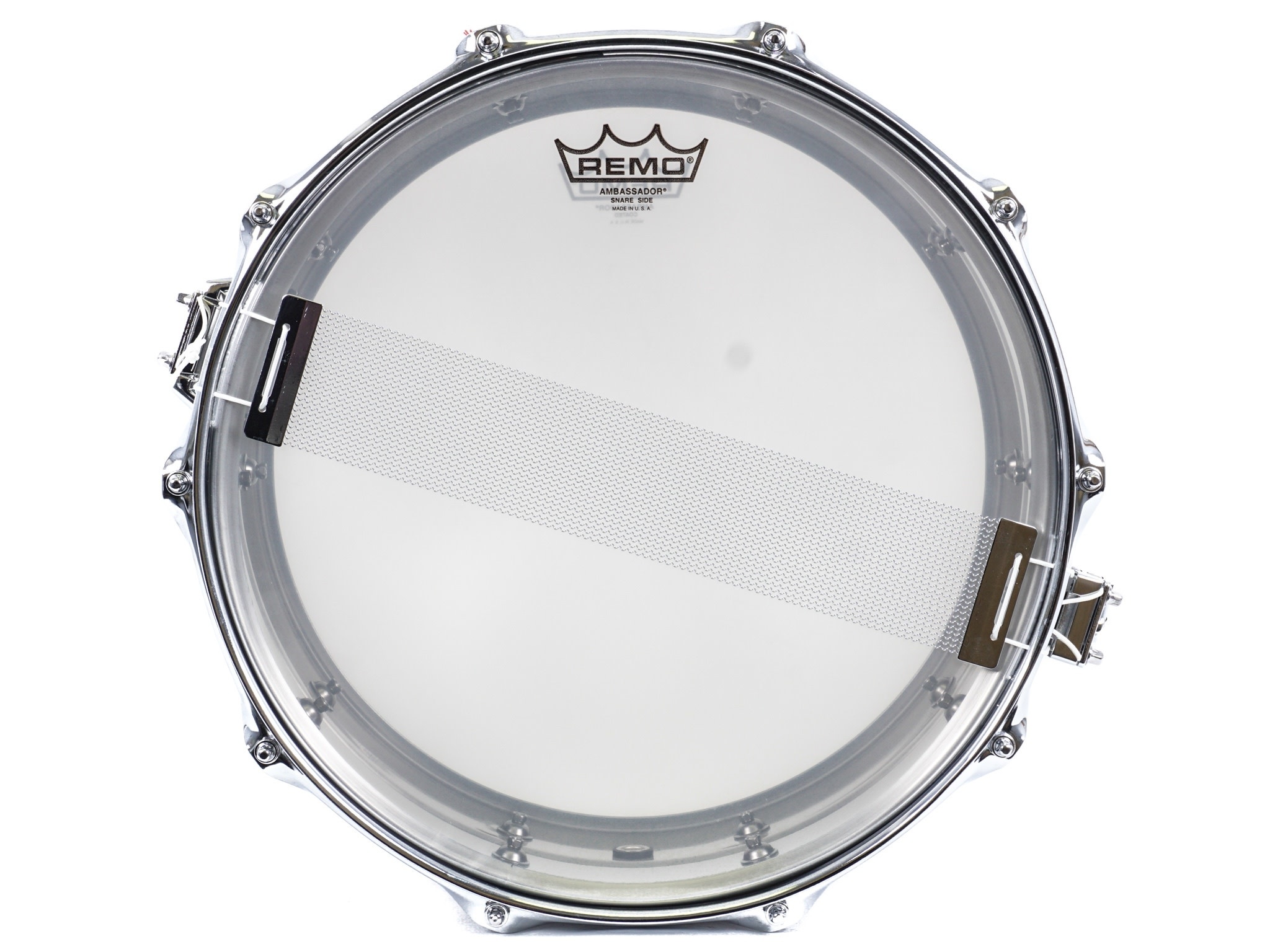 The recording custom snare drum is constructed out of steel for its shell to produce a defined tone that is mellow enough to reduce the need for dampening. The metal shell helps to deliver a very crisp tone that can penetrate the high frequencies so its powerful enough to sit well in loud and heavy music.