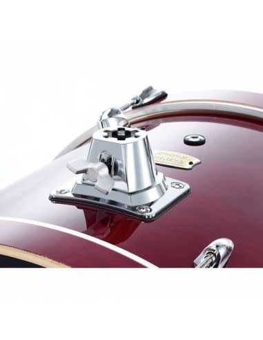 The shell is manufactured using Yamaha’s Air Seal System, ensuring consistent shell roundness and structural stability. Combined with the 45-degree bearing edges, this construction allows the drum to resonate freely while maintaining accurate tuning. The bass drum is finished in high-gloss Cranberry Red lacquer, paired with chrome hardware and matching wooden bass drum hoops for a classic Yamaha look.