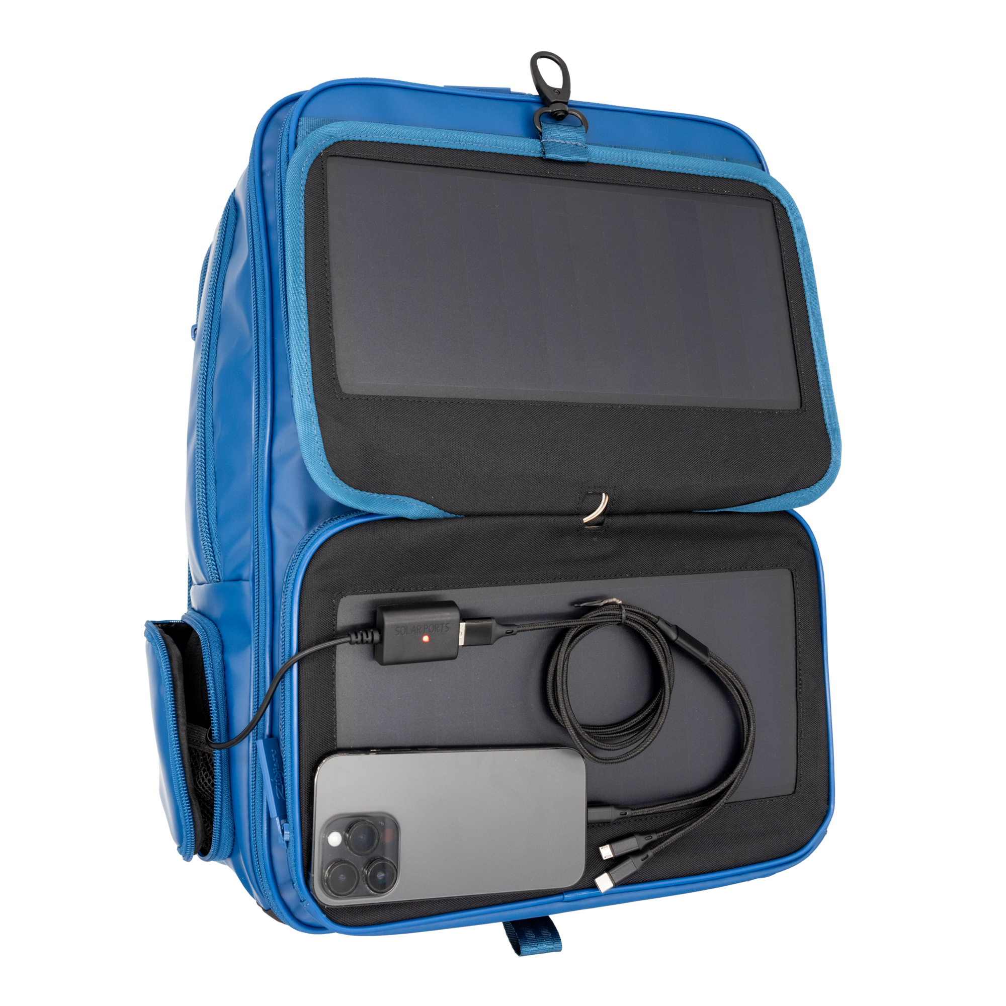 Meet your new travel companion. This solar-powered Touring Backpack combines functionality, security, and convenience, making it the perfect choice for airline carry-ons, road trips or outdoor festivals.